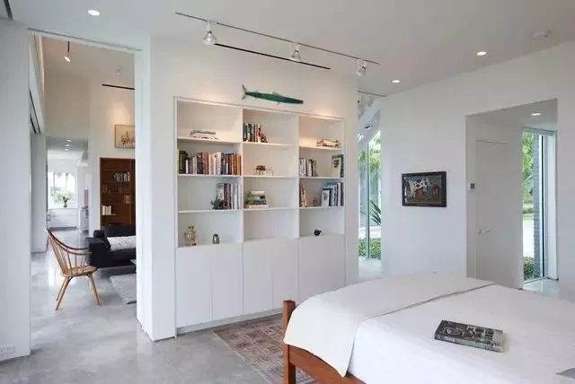 有的是采用的是書柜,書柜隔離了兩個空間,使屋子充滿了書香氣息,是愛書之人是比較青睞的,這種隔離的方式,使書柜有空間可以放,也節省了墻面的金錢