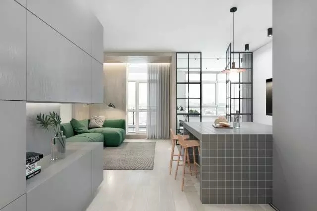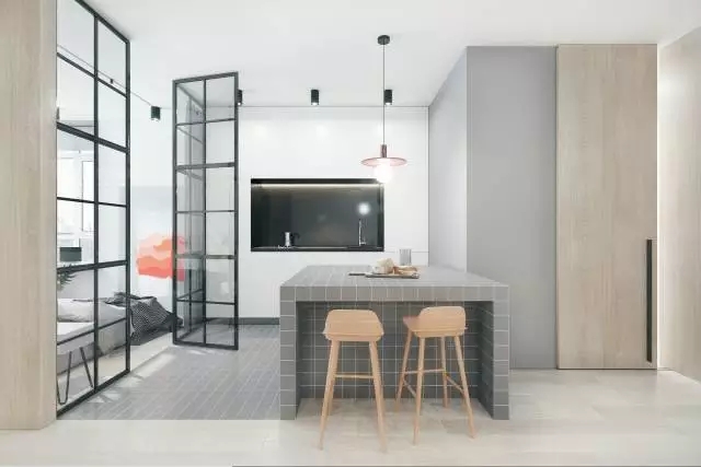 一道極具現代氣息的玻璃隔斷墻,