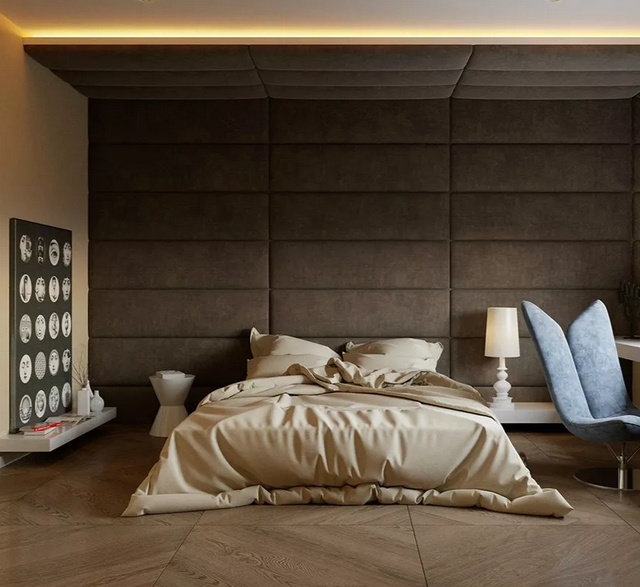軟包背景墻質(zhì)地柔軟,如果選用柔和的色調(diào)更能起到柔化空間的效果。同時,軟包背景墻除了美觀的效果外,還具有阻燃、吸音、隔音、防潮、防靜電、防撞的功能。