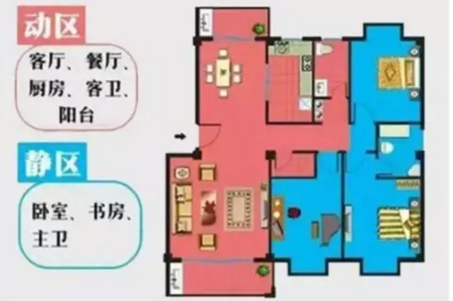 居住動線:主要是指臥室、書房、衛生間,為主人的私密區域,最好不要跟來客動線和家務動線有交叉,影響私密性。