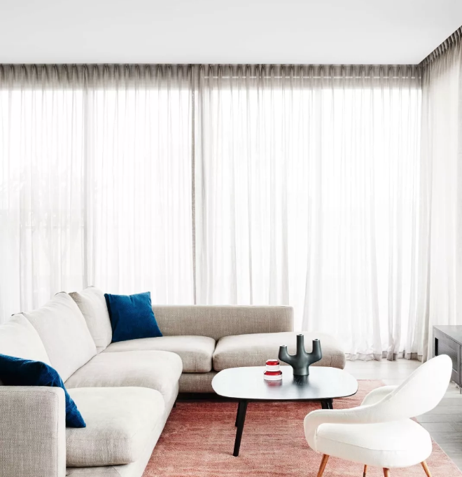 只要不是太小的窗戶,做滿墻落地的窗簾是不二之選,這種頂天立地的效果才更顯空間大,當然也更加氣質漂亮。.