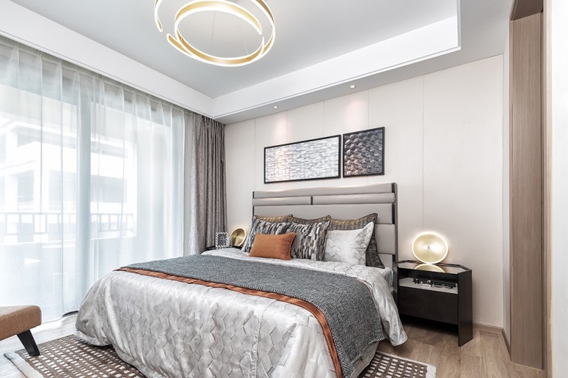 主人的臥室延續(xù)了簡(jiǎn)約的基調(diào),沒(méi)有過(guò)多的裝飾和繁復(fù)的設(shè)計(jì),遮光窗簾為臥室提供了私密的環(huán)境,給主人創(chuàng)造了一個(gè)安眠的好環(huán)境。