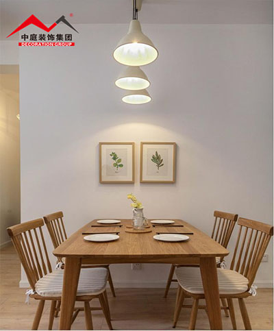 原木的家具給人很溫馨淡雅的感覺。整潔的乳膠漆沙發(fā)墻,掛上2幅簡(jiǎn)單的裝飾畫,顯得精致又優(yōu)雅舒適;