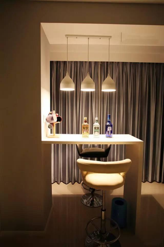 小巧的吧臺占據的位置非常小,利用陽臺和客廳之間的位置,做上一個小吧臺吧,這里的光線又好,晚上欣賞夜景也方便,實在是提升吧臺浪漫程度的一個好地方!