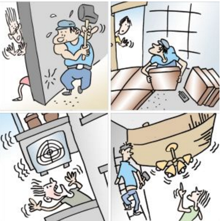 房屋拆改現象雖然很普遍,但是并不是所有的地方都可以隨便改動,其中承擔上層樓房重量的房屋梁柱,墻體的受力鋼筋,平衡陽臺重量的陽臺矮墻,承擔整棟樓重量的承重墻等主體建筑不能改動。這些地方是整套房,甚至整棟樓的關鍵所在,如果有所改動會帶來很多意想不到的安全隱患。