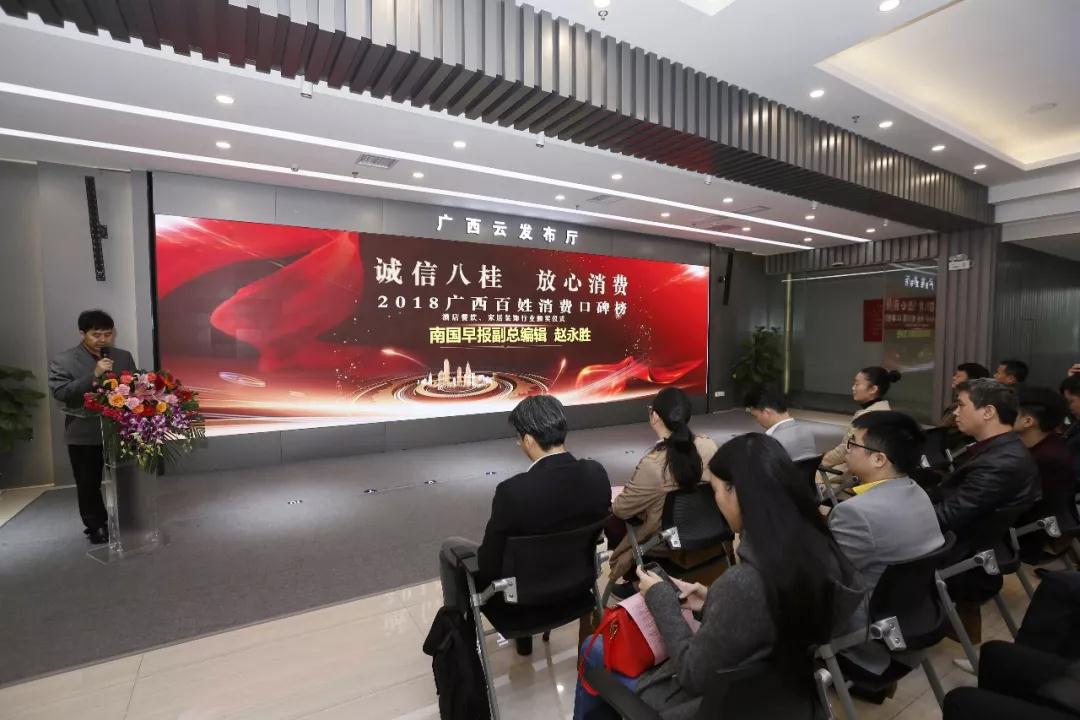 2018年11月20日,注定是不平凡的一天,“誠信八桂 放心消費——2018廣西百姓消費口碑榜頒獎儀式”在廣西日報社云發布廳舉行,這是一份歷時2個多月,超20萬人參與網絡投票,一份最具市場、百姓認可的行業消費榜單!