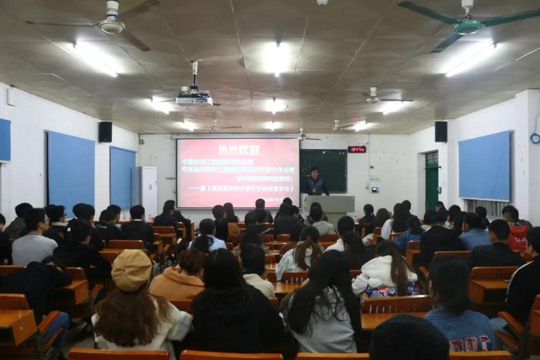 在前期的籌備活動中,已邀請過廣西農業職業技術學院老師和學生來中庭裝飾集團進行過參觀與交流,彼此都留下非常好的印象,2018年11月22日,我公司張立安張總帶領營銷三部蘇家毅蘇經理和人力資源部黃紅娟黃主管等人去到學院進行宣講,讓老師和學生們更加了解中庭裝飾集團,讓他們明白,選擇我們,是正確的。