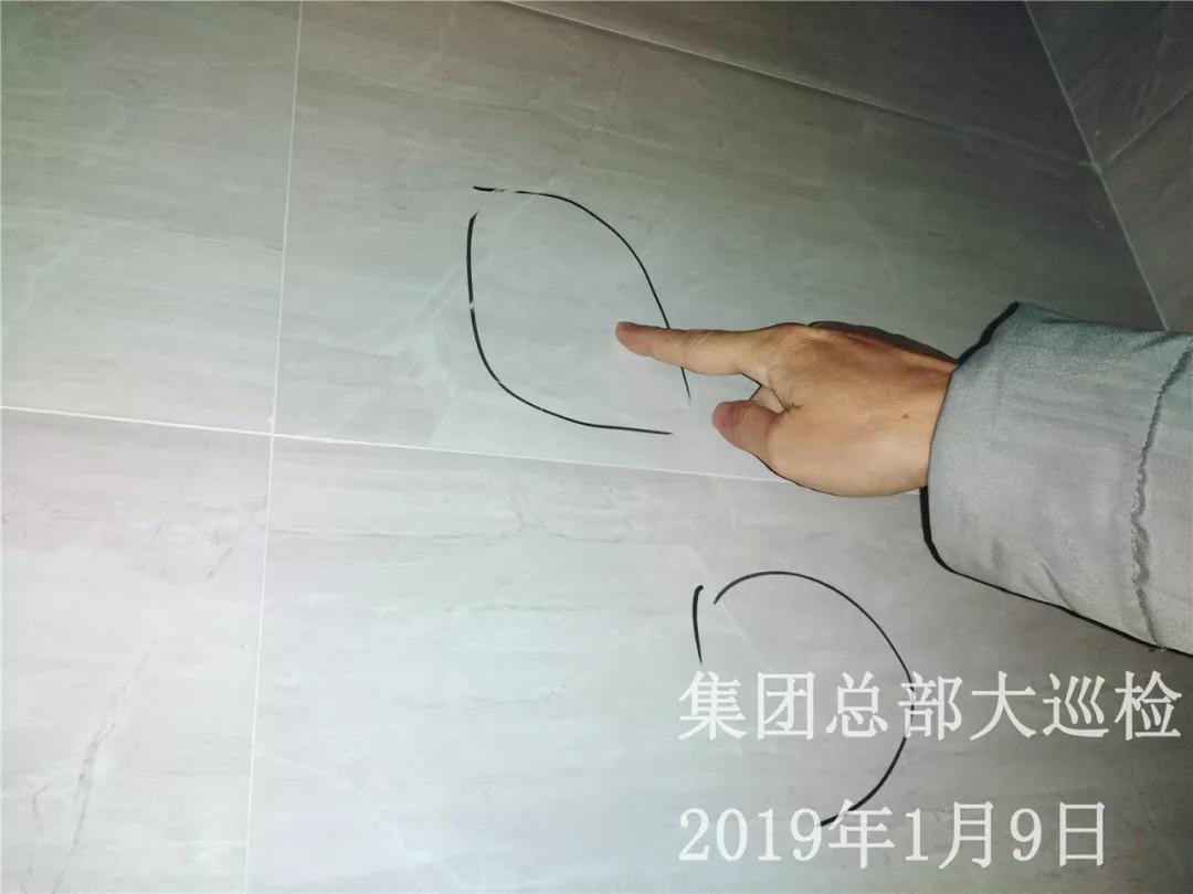 瓷磚空鼓,巡檢組現場作出標記,并責令項目經理進行整改,現場安排跟進人員,讓整改落實到位。