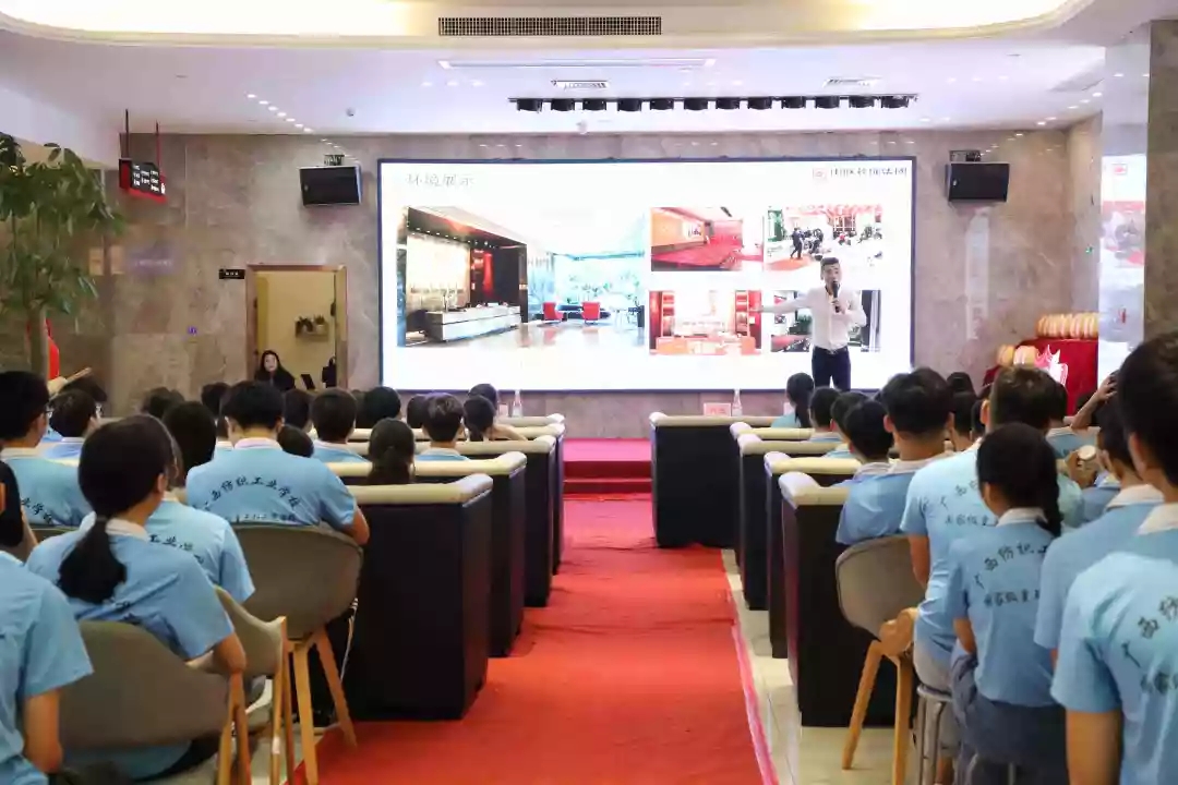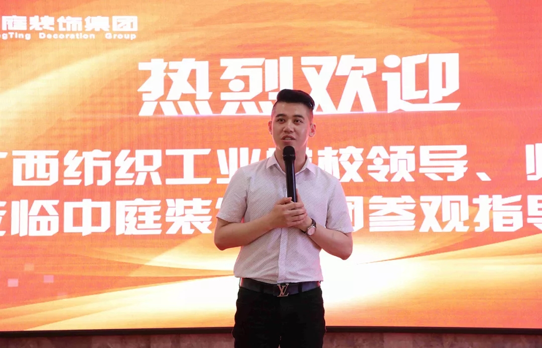 企業宣講交流會上,袁總向廣西紡織工業學校師生系統介紹了中庭裝飾集團的發展歷程、高端設計服務理念、未來的發展規劃以及各部門崗位職能、就業能力要求等,讓學生更加深入了解集團,同時也讓有志來集團發展的學生明確了未來的學習及自我能力提升方向。