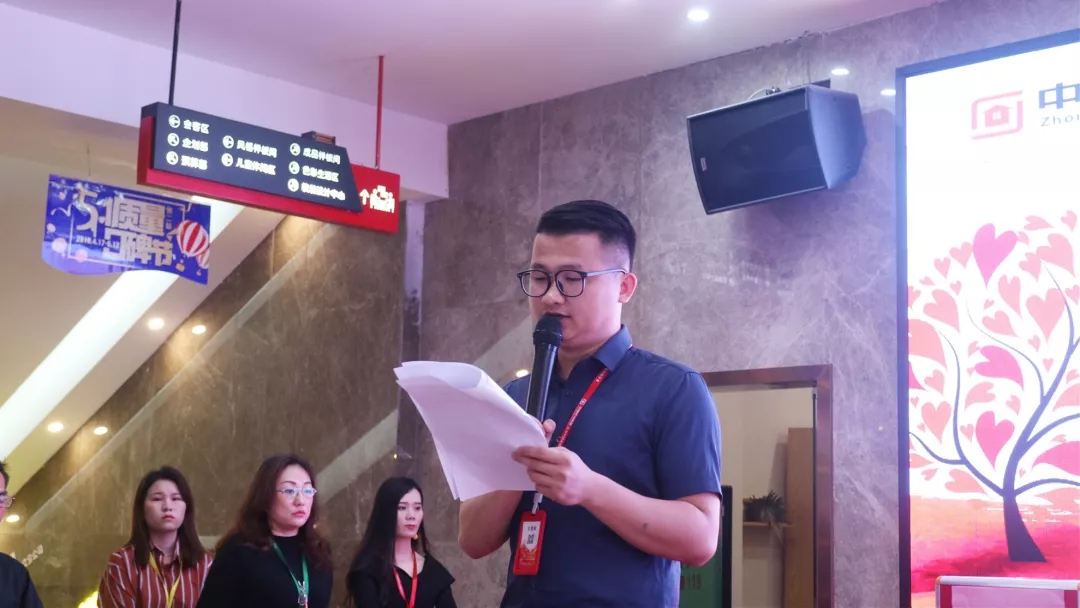 中庭裝飾集團黨支部書記張立安向全體員工發起愛心捐款倡議