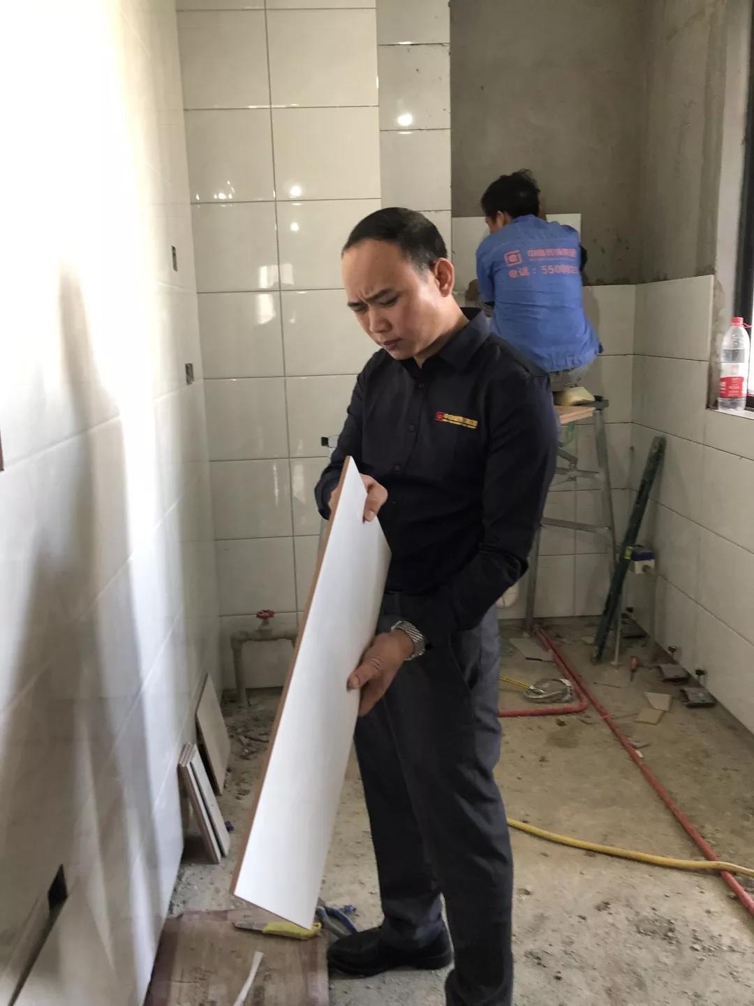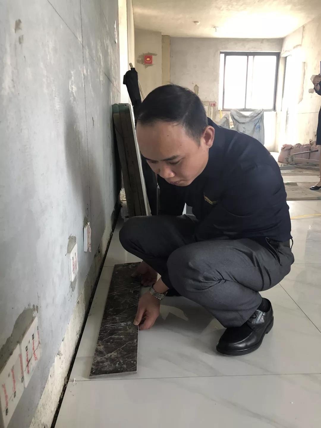 距離廣西教育廳住宅裝修集體開工儀式已過去一月有余,部分工地施工相繼進入鋪磚階段。作為教育廳住宅裝修工程總指揮,肩負著集團的使命和業主朋友們的信任,集團副總裁、工程質量管理中心總經理吳文戰時刻牽掛著教育廳工地進展情況。10月30日,吳總帶領質管中心工程管理團隊赴工地現場對工程材料、質量和服務三大項進行突擊檢查!