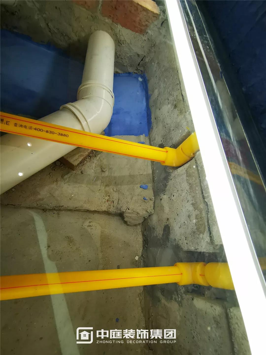 水管翻地梁工藝:進衛生間水管翻墻,防止后期瓦工施工踩踏到水管,導致水管震動引起防水開裂,從而導致防水漏水。
