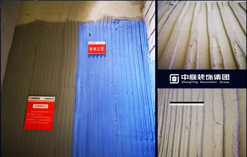 拉毛工藝:墻面拉毛是增加墻面粗糙度的一種施工處理方法,經此工藝處理過的墻面能夠大幅度提升水泥與墻面的附著力,從而使墻磚貼得更牢固,長久不脫落,同時防止瓷磚空鼓。