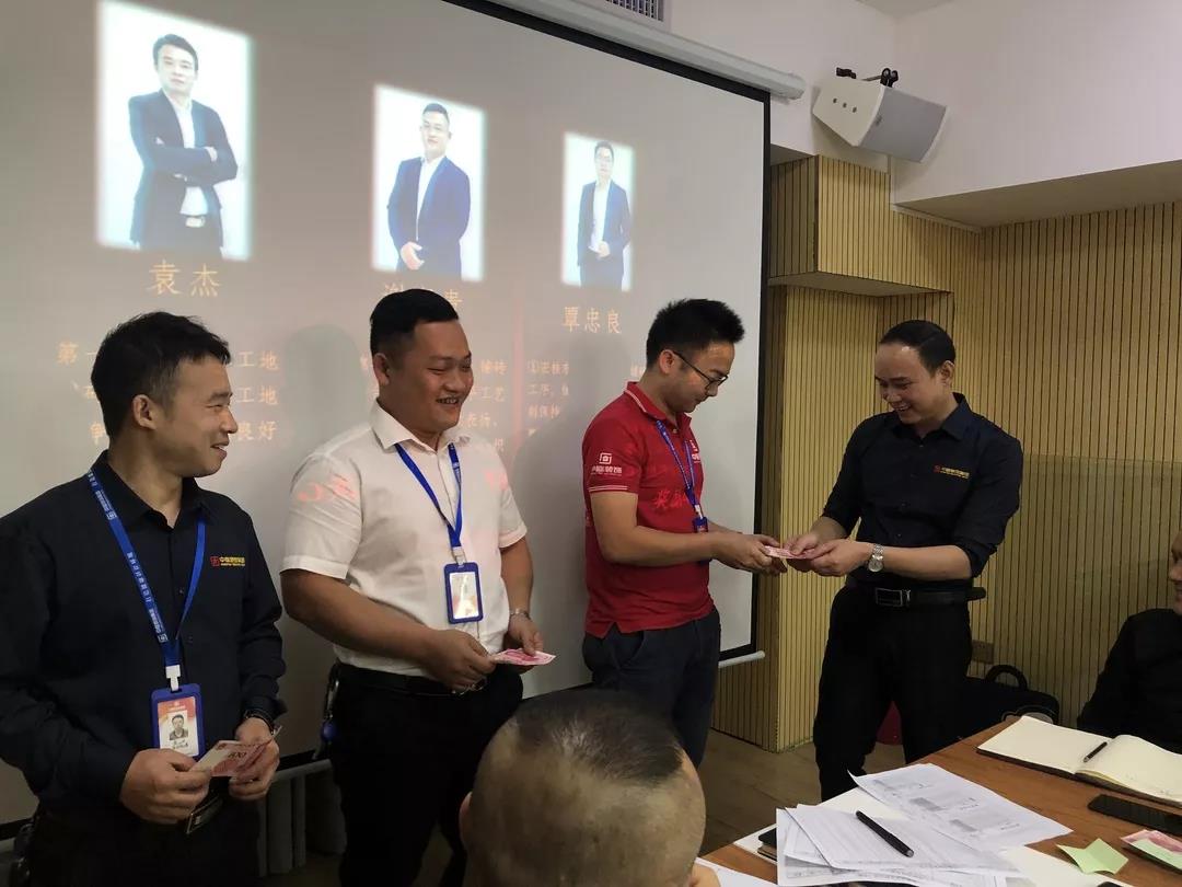 工程質量管理中心總經理吳文戰給10月表現優秀的家人頒發獎勵: