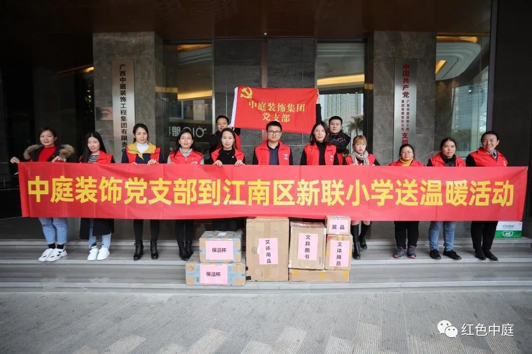 12月22日,廣西中庭裝飾工程集團有限責任公司黨支部部分黨員代表,載著一顆顆樸素的公益助學之心,來到了南寧市江南區新聯小學。