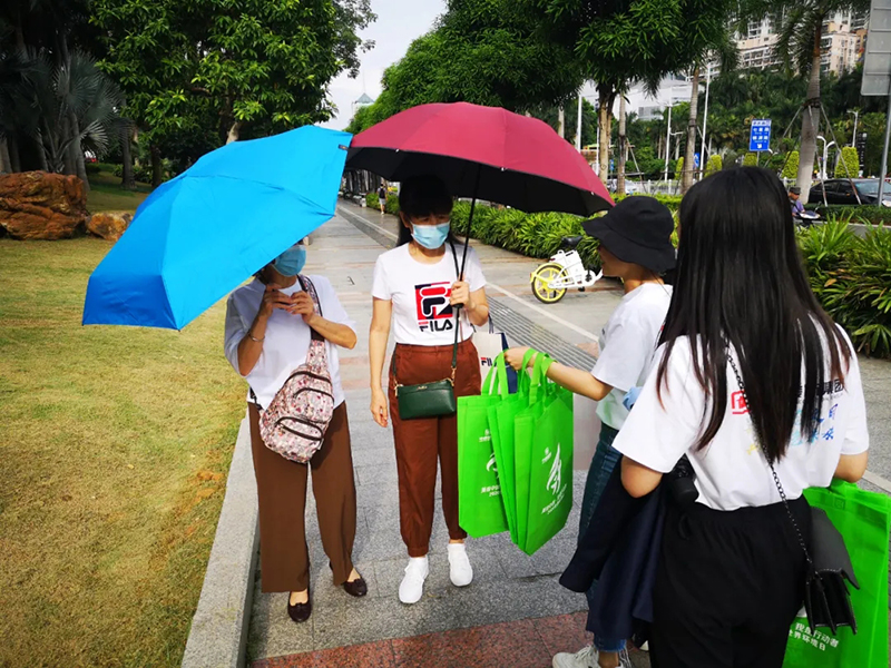 中庭環保袋走進社區、走進地鐵、走上街頭,將環保意識傳遞給了老人,剛剛下課的孩子,辛勤工作的人們,提倡大家以后都用環保袋出行購物,盡量減少塑料袋的使用。