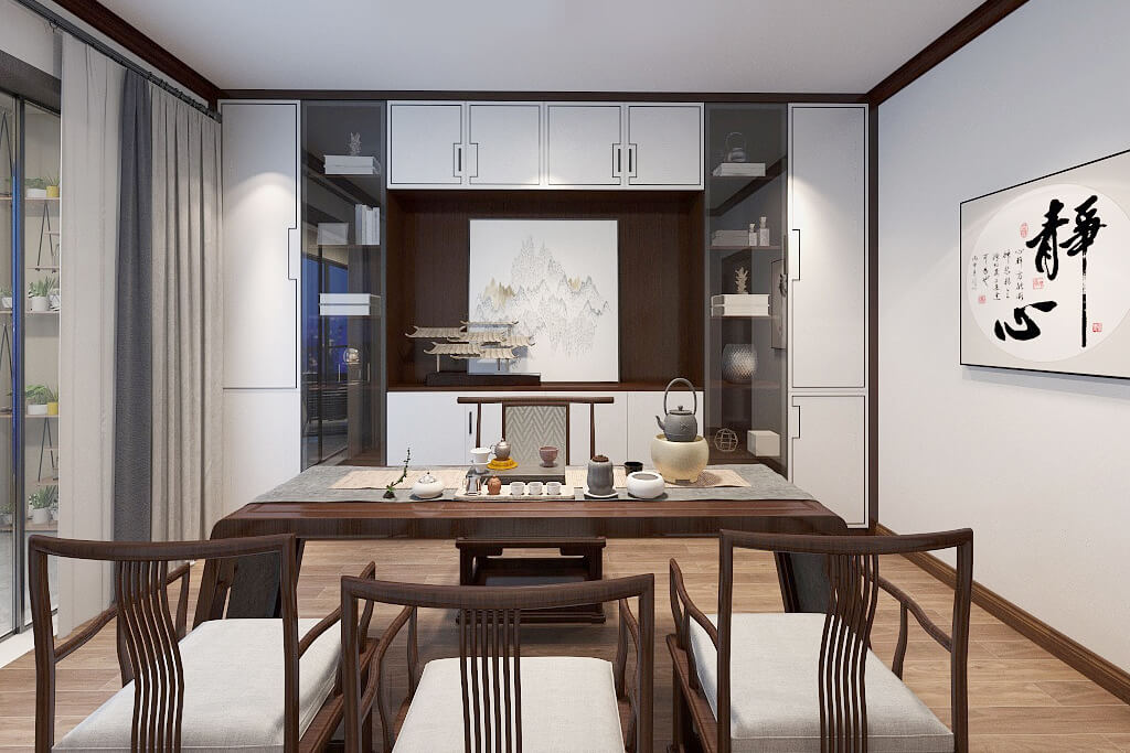 瀏覽量:399在空間上的裝飾多采用簡潔硬朗的直線條,直線裝飾在空間中的使用,不僅反映出現代人追求簡單生活的居住要求,迎合主人家對中式家具的喜愛,中式的家具追求內斂、質樸的設計風格,更加實用、更富現代感。新中式風格的古典高雅又含有現代風格的時尚元素,通過對傳統文化的認識,將現代元素和傳統元素結合在一起,以現代人的審美需求來打造富有傳統韻味的事物,讓傳統藝術在當今社會得到合適的體現。