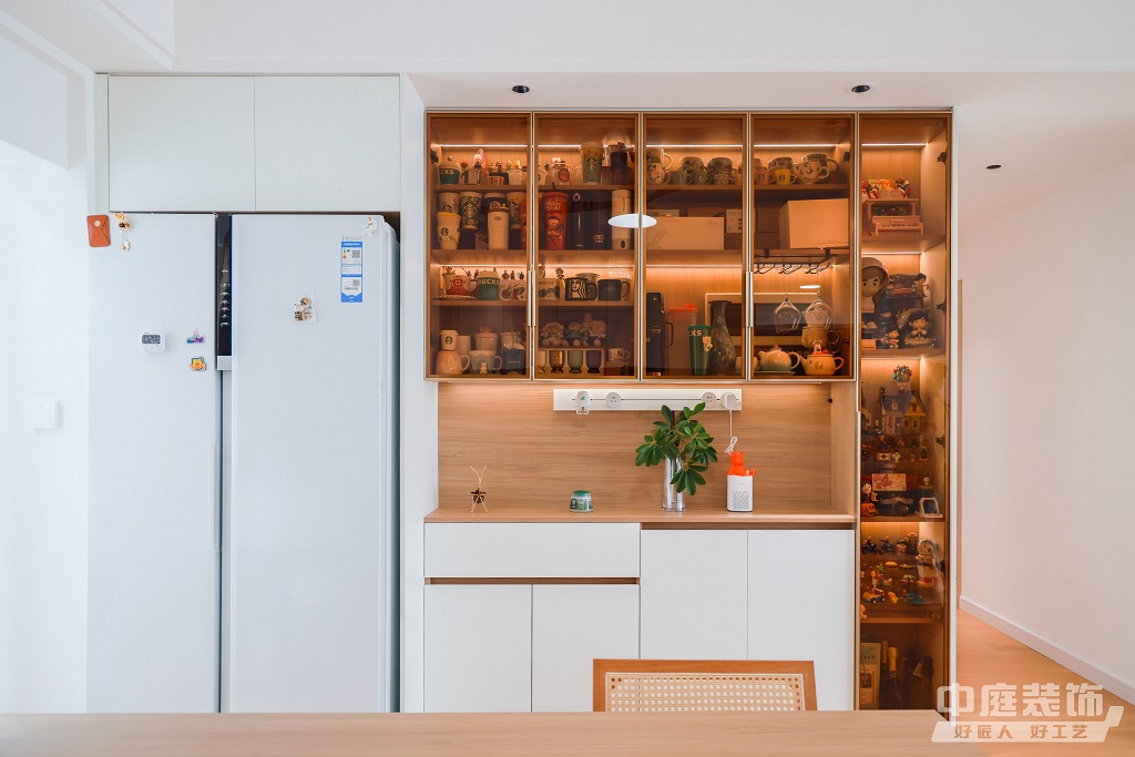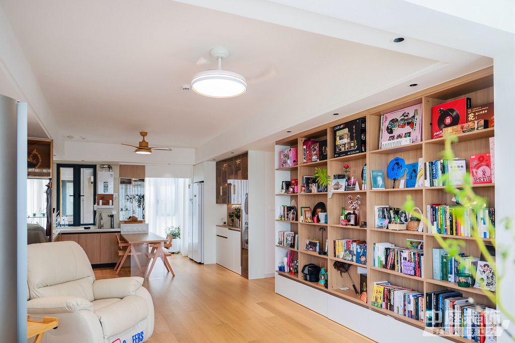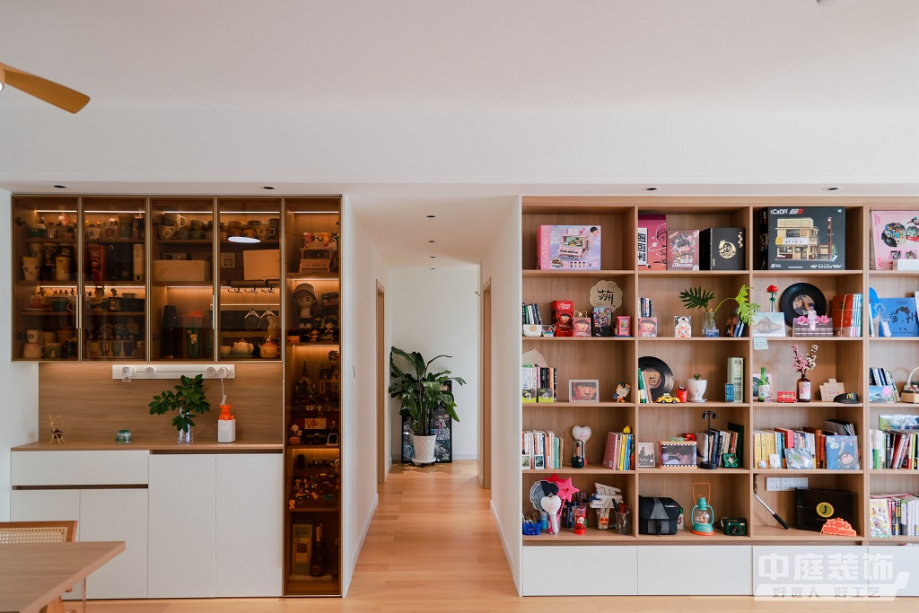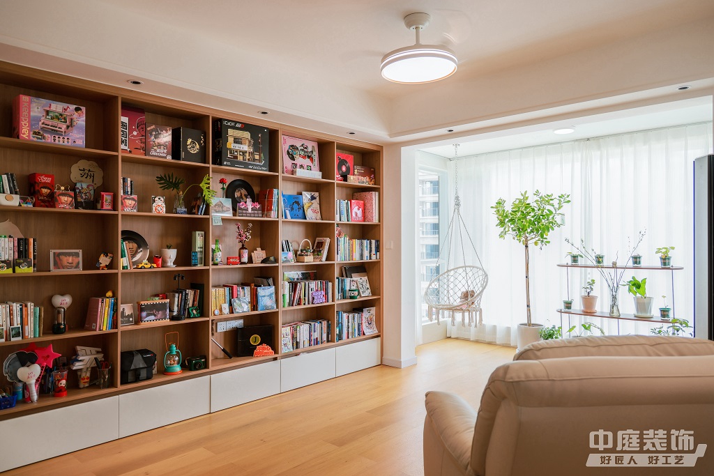 瀏覽量:886仿佛步入了一個(gè)自然與簡(jiǎn)約交織的溫馨空間。淺色調(diào)的木質(zhì)地板營(yíng)造出一種質(zhì)樸而不失高雅的氛圍。客廳中央,去客廳化的設(shè)計(jì),一排原木色到頂書(shū)架擺滿精心挑選的物件和書(shū)籍,一進(jìn)門(mén)就能感受家的溫暖。