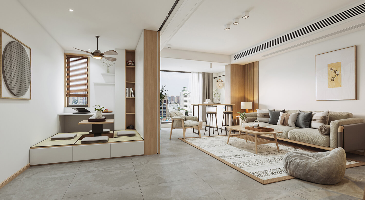 天然的材質,簡約的線條,使居住環境舒適溫馨。日式風格比較注重空間的分隔以及它的流動,空間感很明朗。